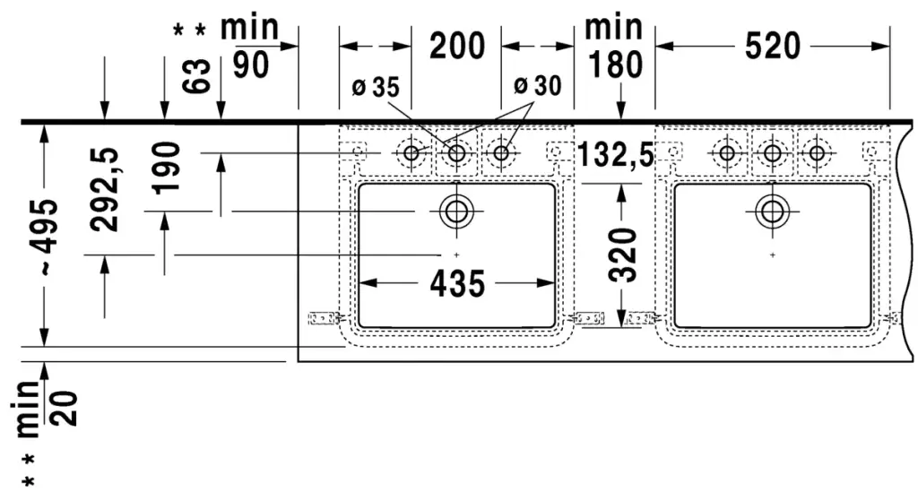 Duravit DuraStyle Раковина встраиваемая снизу на 3 отв. 52х49,5x17,5h см, цвет: белый 26315200301