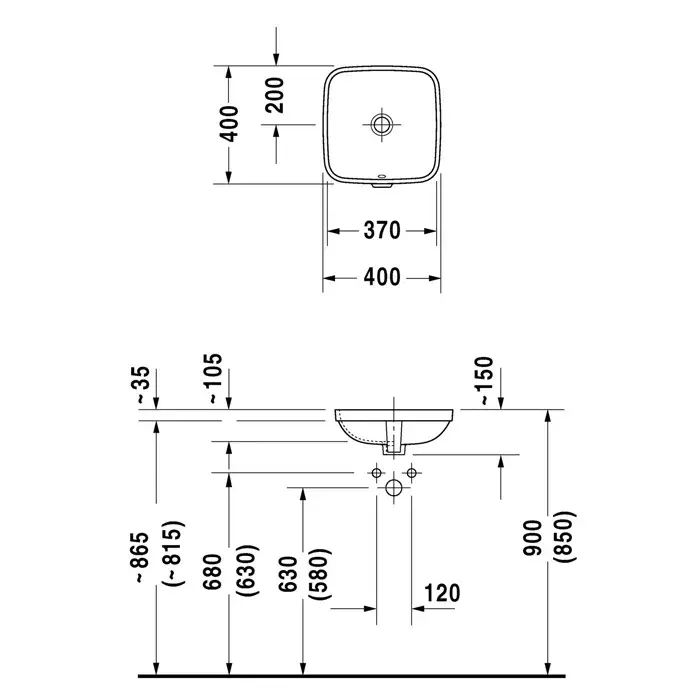 Duravit DuraStyle Раковина встраиваемая снизу, с переливом, 37х37 cм, цвет белый 373370000
