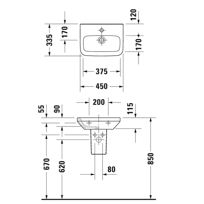 Duravit DuraStyle Умывальник для рук с 1 отв. для смесителя, 45x33,5 cм, цвет белый 0708450000