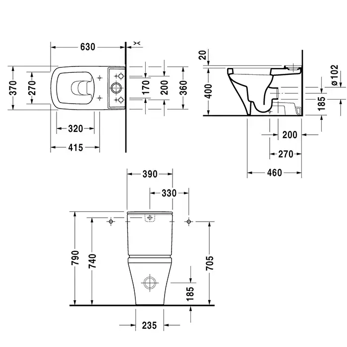 Duravit DuraStyle Унитаз моноблок 37х63см, с креплением, слив универсальный, цвет: белый
