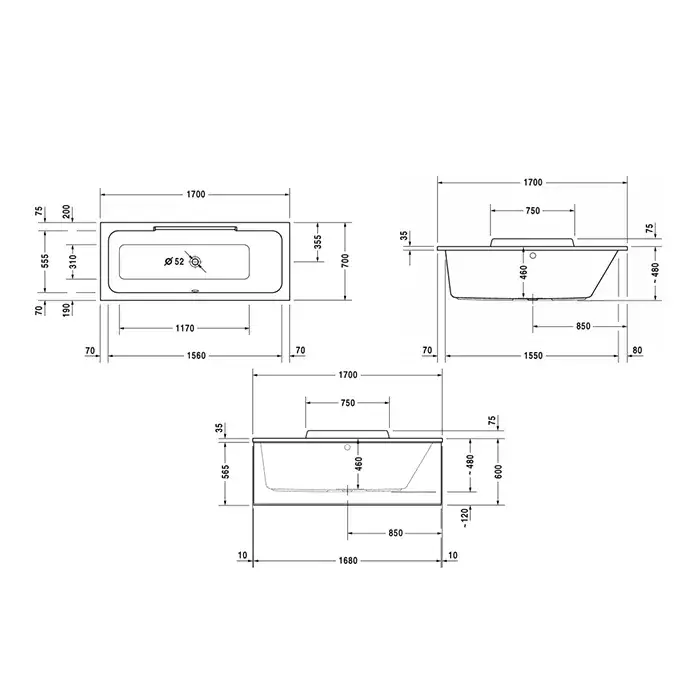 Duravit DuraStyle Ванна 170х70 см, прямоугольная, цвет белый 700295000000000