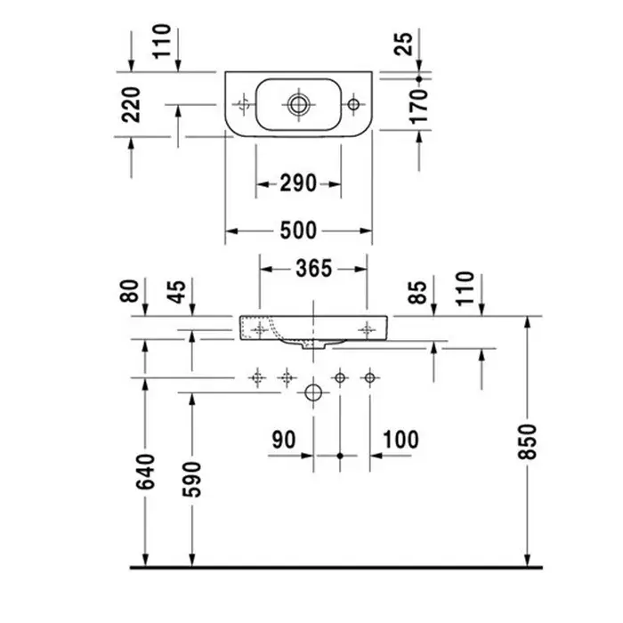 Duravit Happy D.2 Раковина 50х22 см, слева SX, без слив перелива, цвет белый 711500009