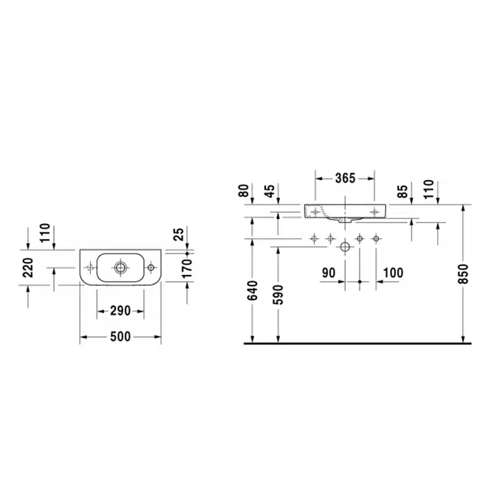 Duravit Happy D.2 Раковина 50х22 см, справа DX, без слив перелива, цвет белый 711500008