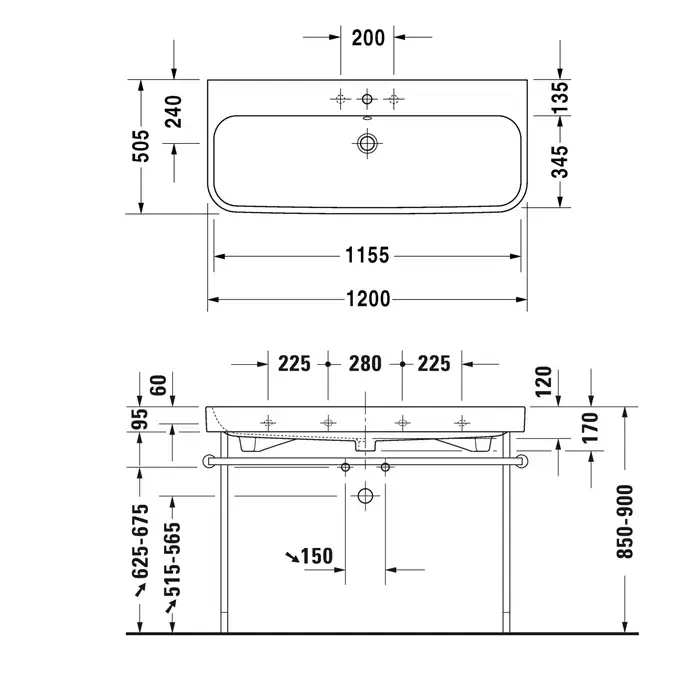 Duravit Happy D.2 Раковина для мебели шлифованный с перел., хром, 120x50,5 cм, цвет белый 2318120028