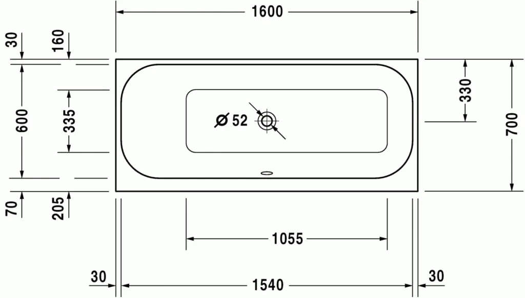 Duravit Happy D.2 Ванна акриловая встраиваемая 160х70x48h см, цвет: белый 700308000000000