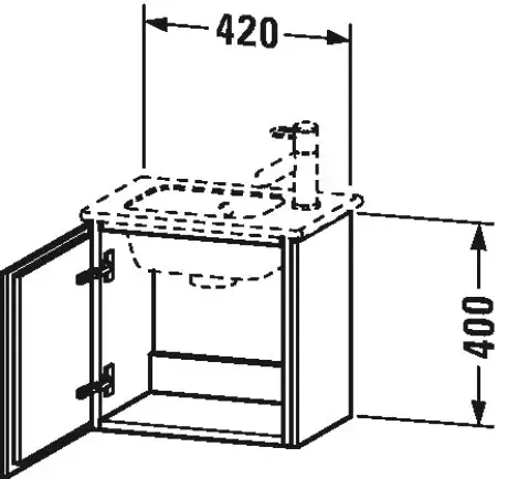 Duravit L-Cube База подвесная 44x44x31.1см с раковиной, 1 дверца, петли слева, цвет: глянцевый белый