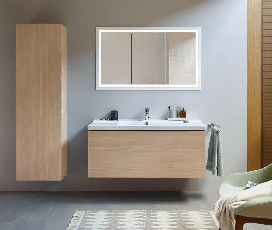 Duravit L-Cube Зеркальный шкаф 120х15.4xh70см. 3 дверцы зеркальные,с 4-х сторонней подсветкой, с LED диммером справа внизу