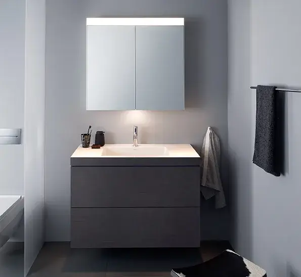 Duravit L-Cube Зеркальный шкаф 120х15.4xh70см. 3 дверцы зеркальные,с 4-х сторонней подсветкой, с LED диммером справа внизу