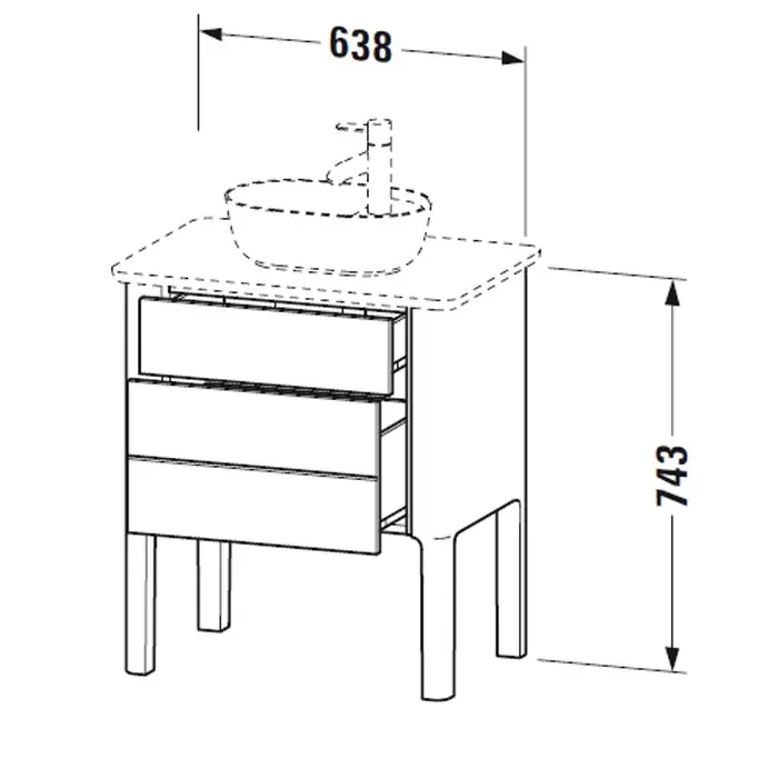 Duravit Luv База напольная 68.8x45х74.3см, с 1 выдв. ящиками, каменой столешницей и раковиной, цвет: белый шелковисто-матовый