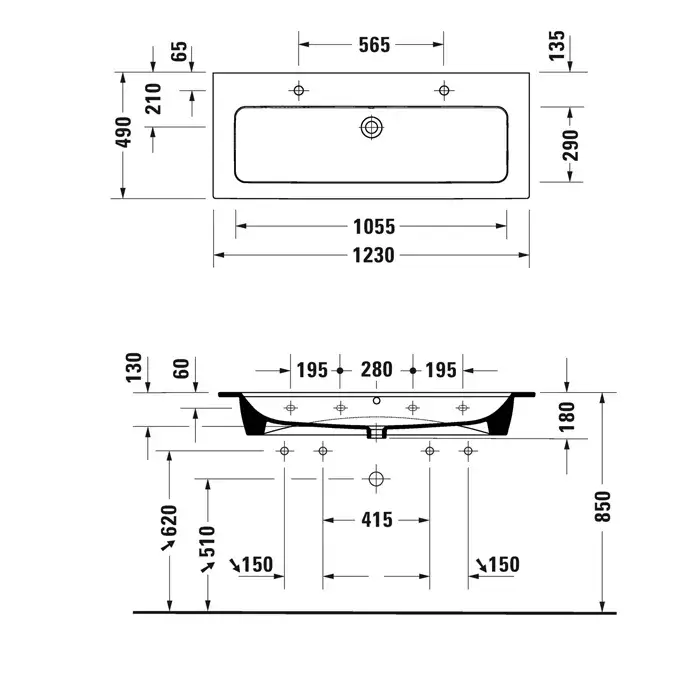Duravit Me by Starck Раковина для мебели 123х49 см, с 2 отв., цвет: белый 2361120024
