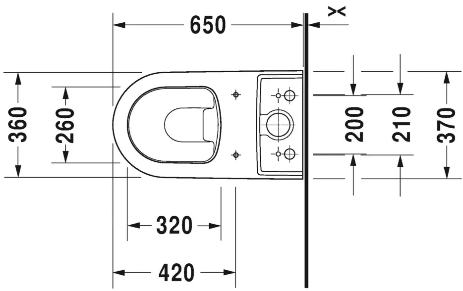 Duravit ME by Starck Унитаз подвесной укороченный Rimless 37х48см., вкл. крепление Durafix, 4,5л., 37х48см., белый