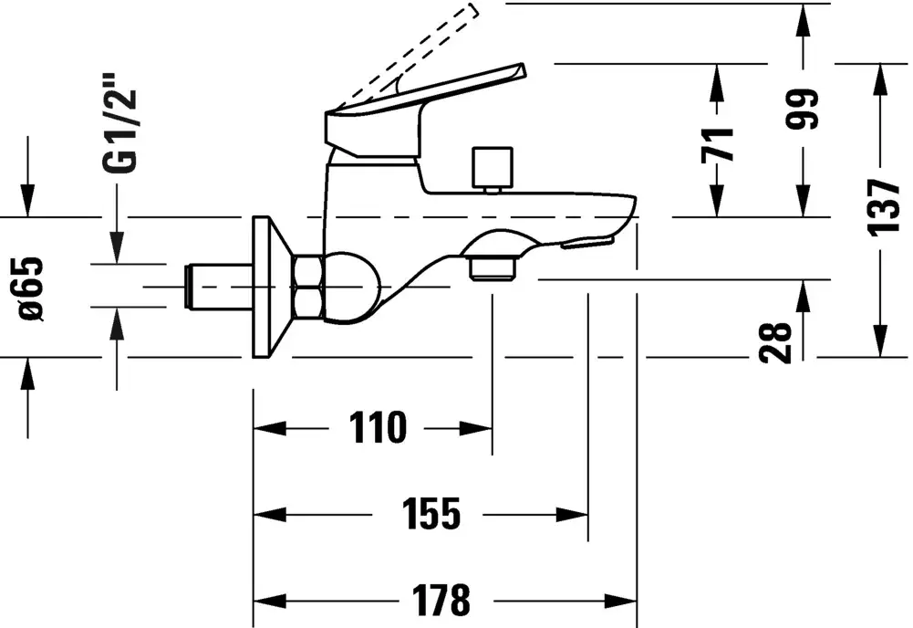 Duravit No.1 Смеситель для ванны настенный, однорычажный, цвет: хром N15230000010