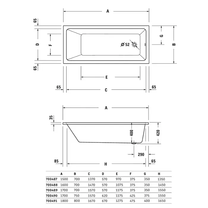 Duravit D.1 Ванна акриловая встраиваемая, 1800х800мм, белая