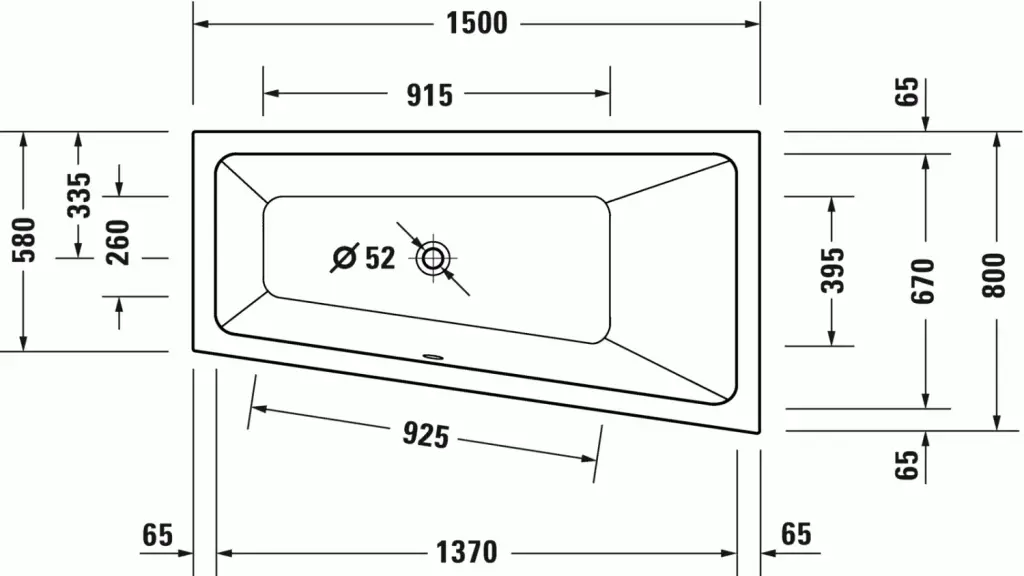 Duravit No.1 Ванна акрил. встраиваемая угл. правая 150х80х48h см, цвет: белый глянц. 700505000000000