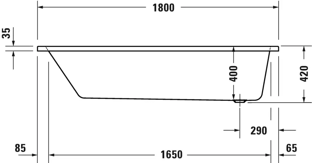 Duravit No.1 Ванна акриловая встраиваемая 180х80х42h см, цвет: белый глянцевый 700491000000000
