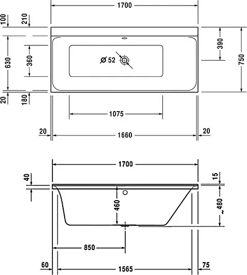 Duravit P3 Comforts Ванна акриловая 170х75 см, цвет белый 700376000000000
