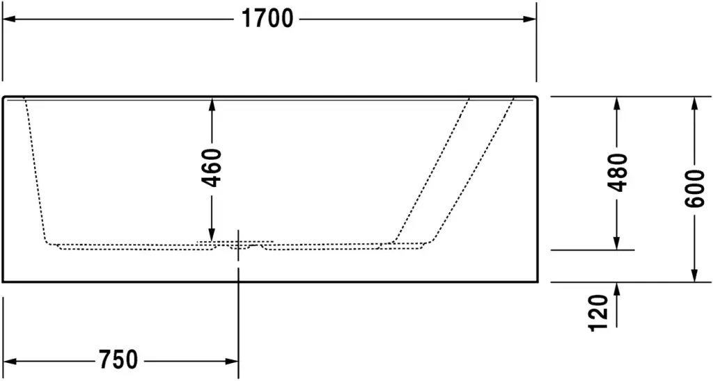 Duravit Durastyle Ванна 170х75x34см, акриловая, прямоугольная встраиваемая или с панелями, цвет: белый
