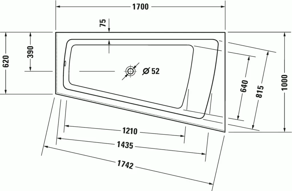Duravit Paiova Ванна акрил. встраиваемая угловая правая 170х100x60h см, цвет: белый 700265000000000