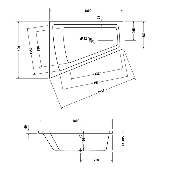 Duravit Paiova Ванна встраиваемая 180x140х48.5см, с наклоном для спины слева, цвет: белый