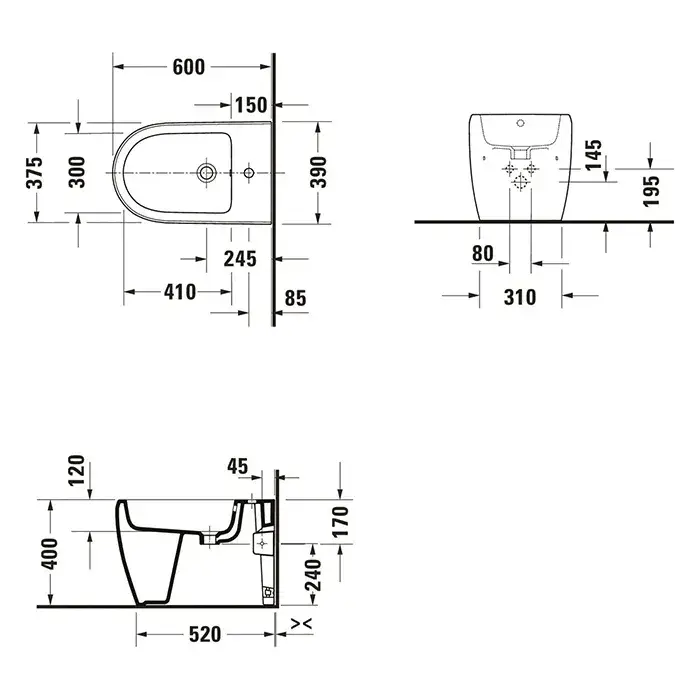 Duravit Qatego Биде напольное 39x60 см, с переливом хром, цвет: белый глянцевый 2263100000