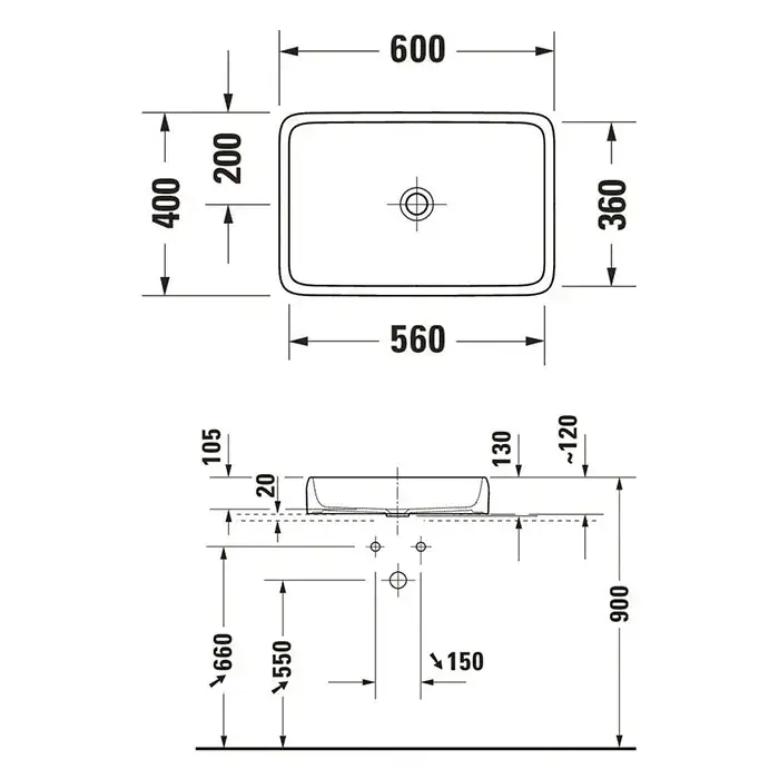 Duravit Qatego Раковина накладная 56x40x13h см, без перелива, цвет: белый глянцевый 2383600079