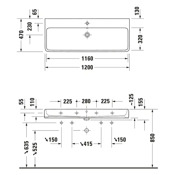 Duravit Qatego Раковина подвесная 120x47x15.5h см, с переливом, цвет: белый глянцевый 2382120000
