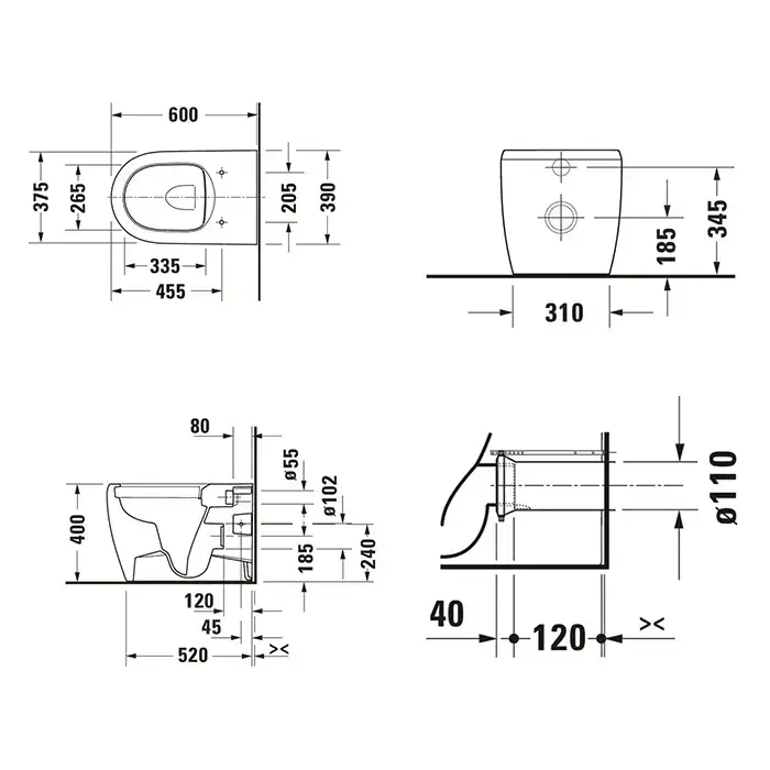 Duravit Qatego Унитаз напольный безободковый 390х600 мм,HygieneGlaze , цвет белый