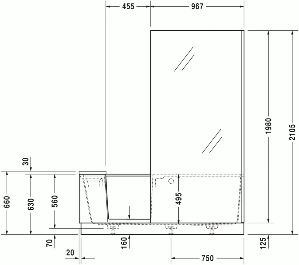 DURAVIT Shower + Bath Bathtub Ванна 170х75хh210.5см, прямоугольная с входной дверью и душевой шторкой, SX - левосторонняя, цвет: белый