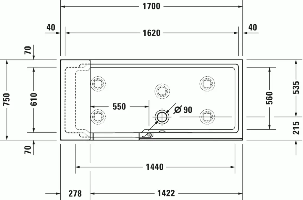 Duravit Shower + Bath Ванна с дверцей акриловая прист. 170х75x210,5h см, цвет: белый 700455000000000
