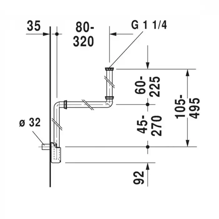 Duravit Сифон экономичный для мебели, 1 1/4, материал: пластик, цвет: белый
