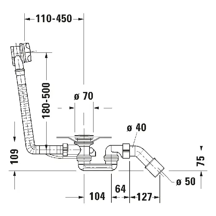 Duravit Сифон для душевого поддона, сток горизонтальный, цвет: белый