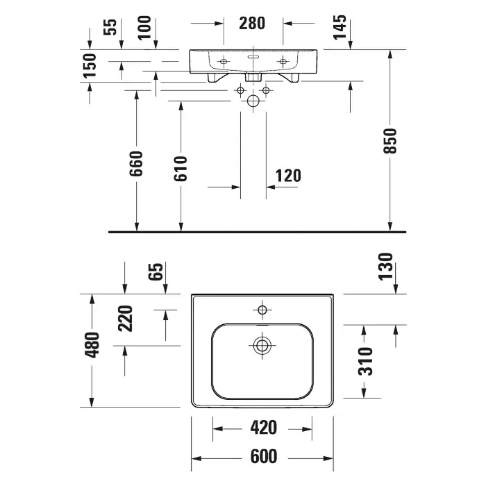 Duravit Soleil by Starck Раковина подвесная 60x48x15h см, с переливом, цвет: белый глянцевый 2377600000