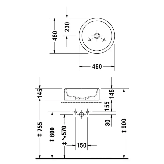 Duravit Starck 1 Раковина накладная 46x46x14.5h см, без перелива, цвет: белый глянцевый 04454600001