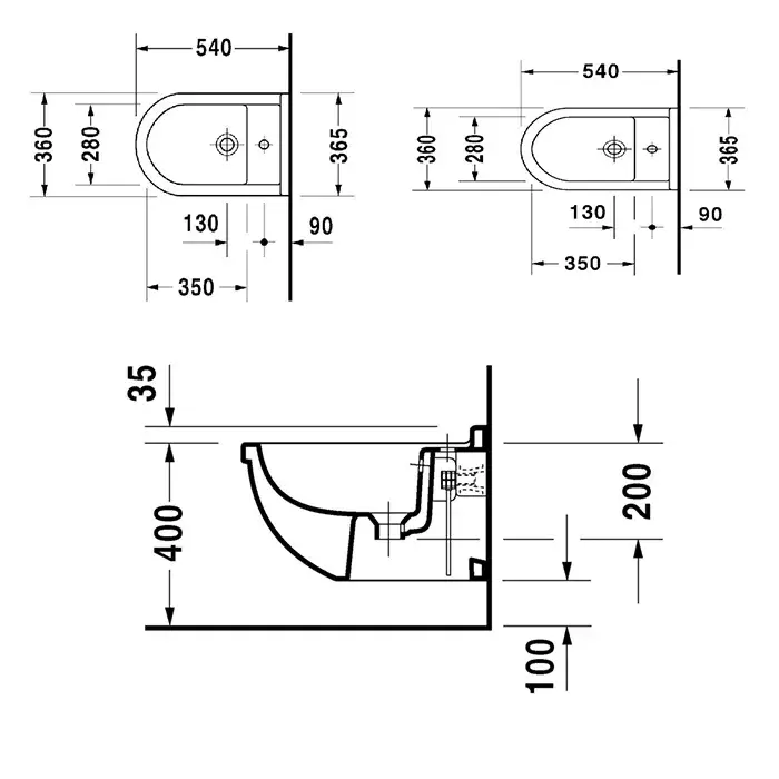 Duravit Starck 3 Биде подвесное 36х54 cм с 1 отвер. под смеситель и креплением Durafix, цвет:белый 2280150000