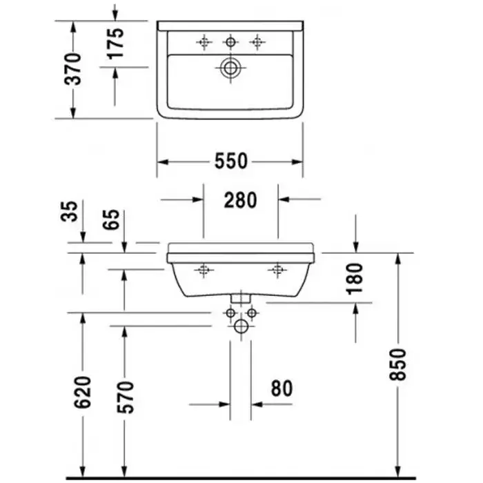Duravit Starck 3 Раковина подвесная прямоугольная с 1 отв 55x37x18h см, цвет: белый 301550000
