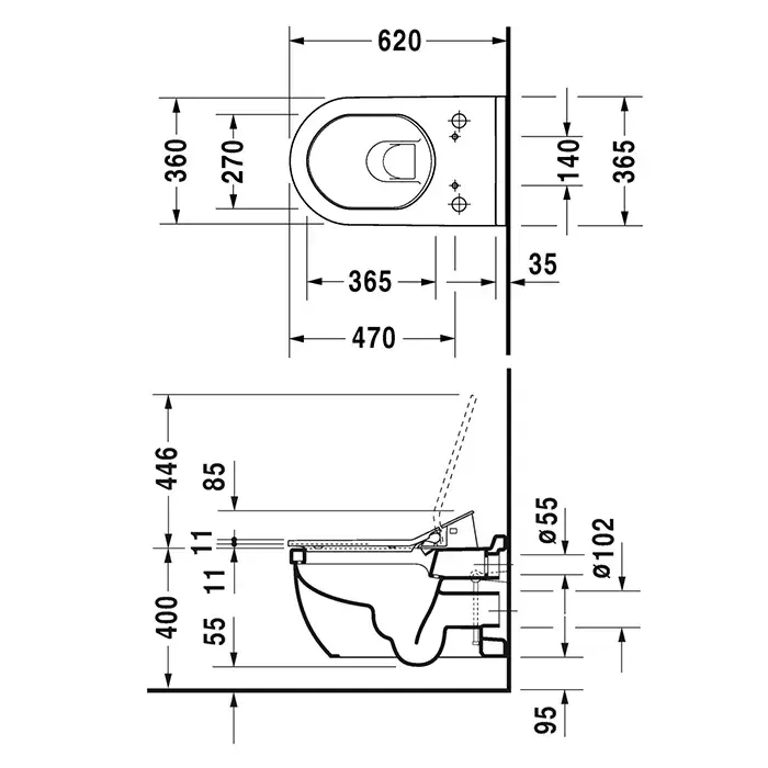 Duravit Starck 3 Унитаз подвесной 37x62см., Сompact, укороченная модель, цвет: белый