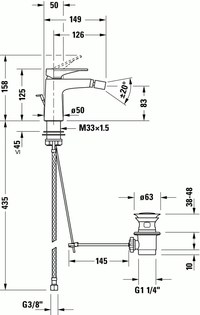 Duravit Tulum Смеситель для биде, однорычажный, с донным клапаном, цвет: хром TU2400001010