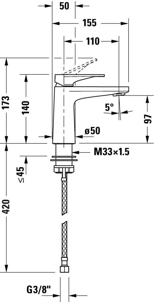 Duravit Tulum Смеситель для раковины S, однорычажный, без донного клапана, цвет: хром TU1010002010
