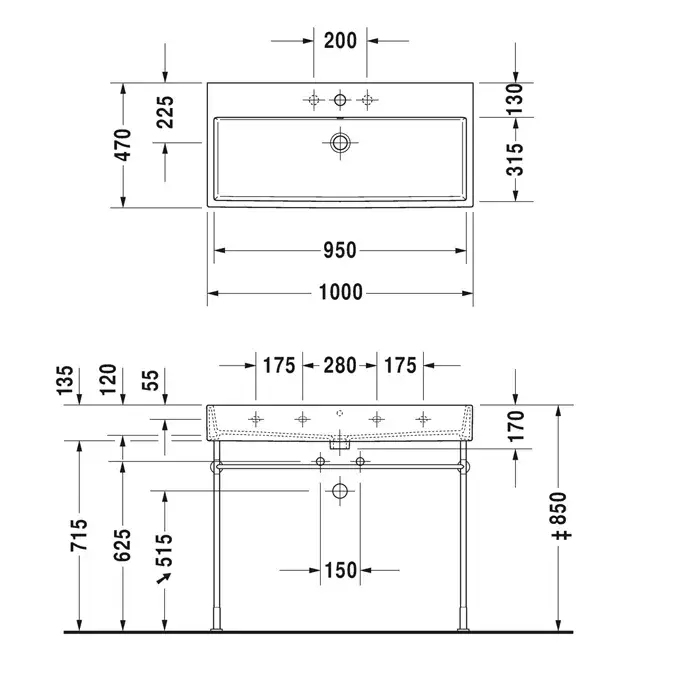 Duravit Vero Air Раковина 100 cм, с переливом, с 1 отв. под смеситель, цвет: белый 2350100041