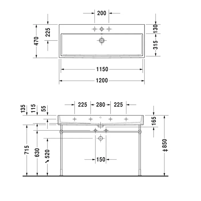 Duravit Vero Air Раковина 120 cм, с 1 отв. под смеситель, на столешницу, цвет: белый 2350120071