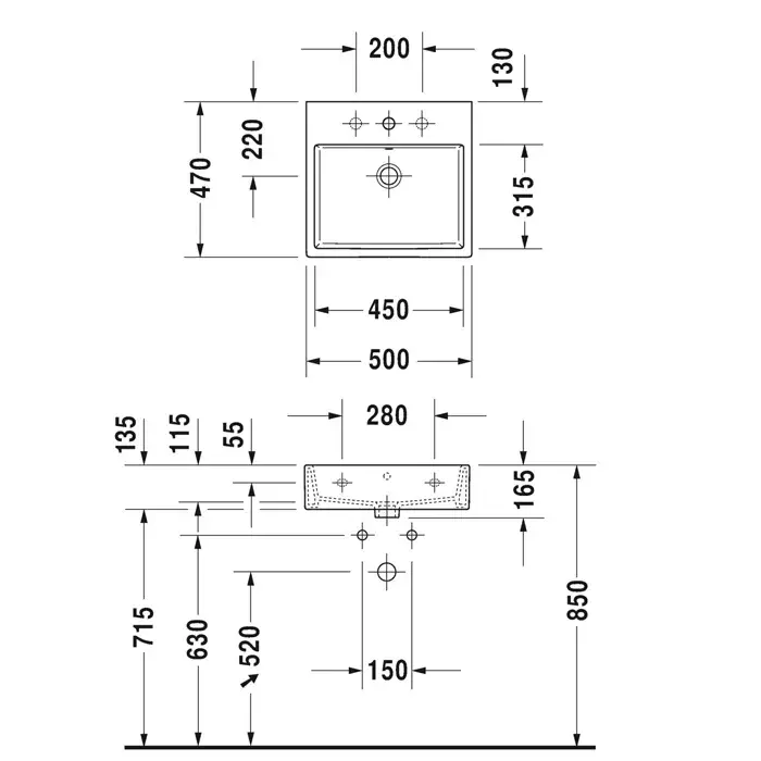 Duravit Vero Air Раковина 50 см, с площадкой, с 1 отв., на столешницу, цвет: белый 2350500027