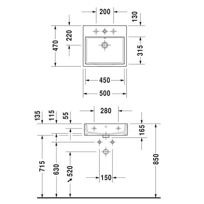 Duravit Vero Air Раковина 50 см, w, с площадкой, без отв. под смеситель, цвет: белый 2350500060