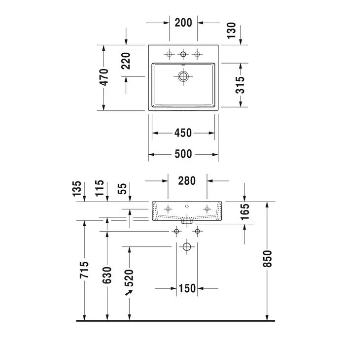 Duravit Vero Air Раковина 50х47см., подвесная, без перелива, c 1 отв., шлифованная, цвет: белый