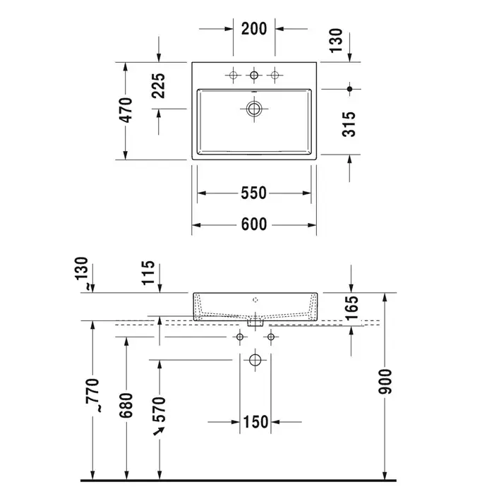 Duravit Vero Air Раковина 60 см, с переливом, с площадкой, с 3 отв., цвет: белый 2352600030