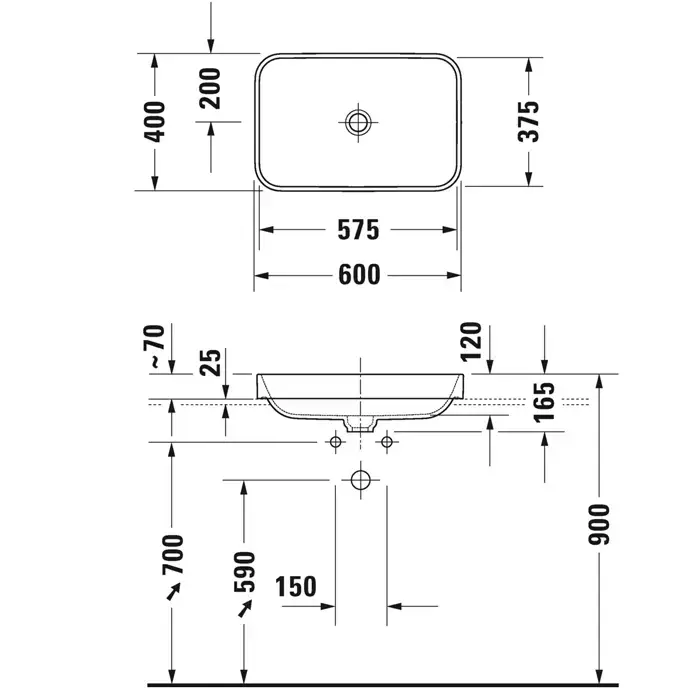 Duravit Vero Air Раковина 60х40см, без отв.,без перелива, цвет: белый