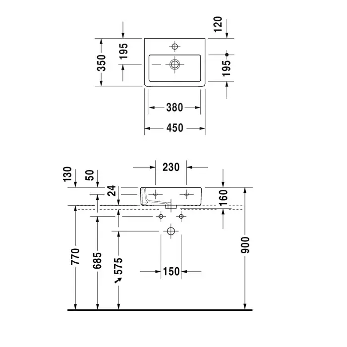 Duravit Vero Мебельная раковина для рук, с перел., 45x35 cм, цвет белый 0704450000