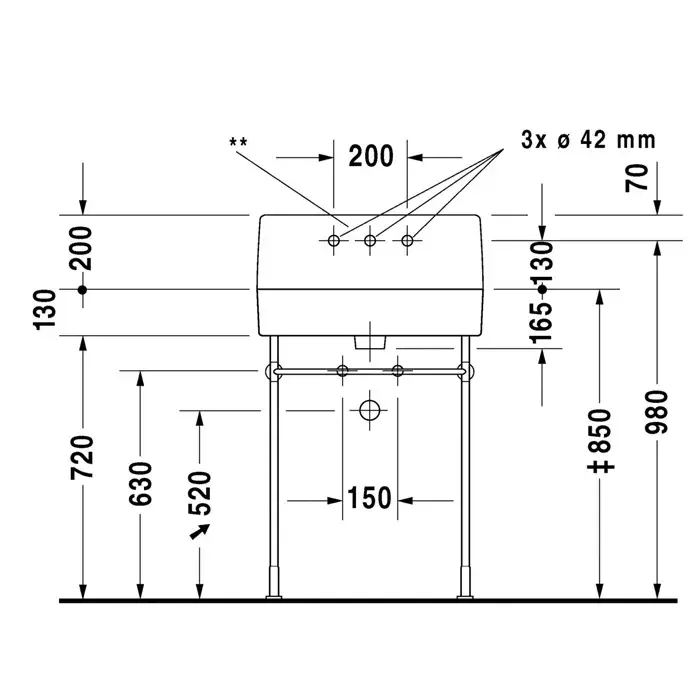 Duravit Vero Металлическая консоль регулировка по высоте + 5 см, цвет хром 0030651000