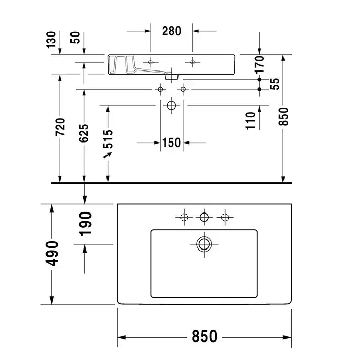 Duravit Vero Раковина для мебели с перел., с 1 отв. под смес., 850x490мм, Цвет: Белый