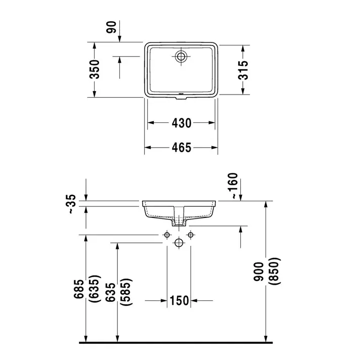 Duravit Vero Раковина встраиваемая снизу 46.5x35 см, с переливом, цвет: белый глянцевый 03304300001