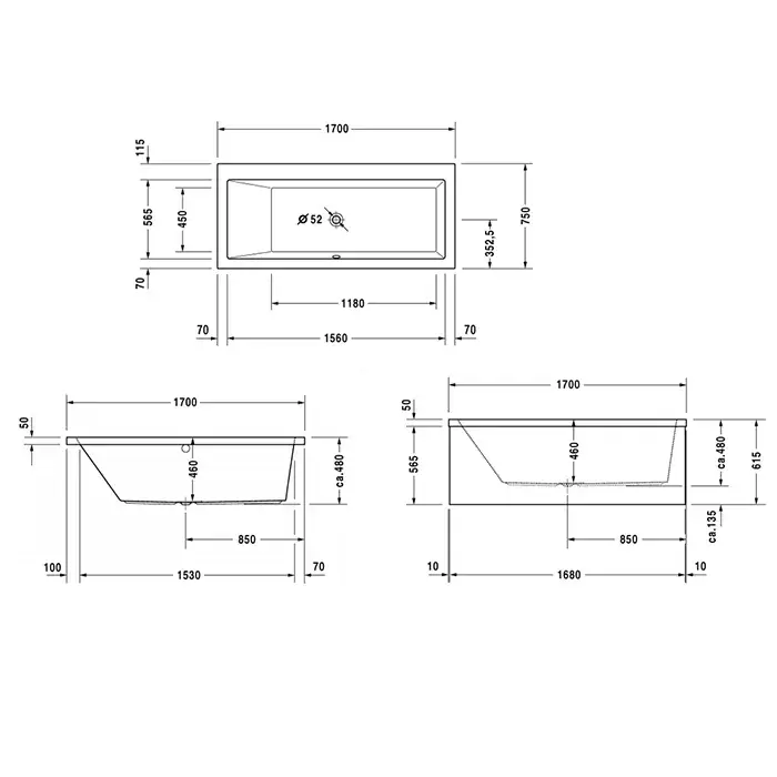 Duravit Vero Ванна 170х75 см, акриловая, наклон спины слева, цвет белый 700133000000000